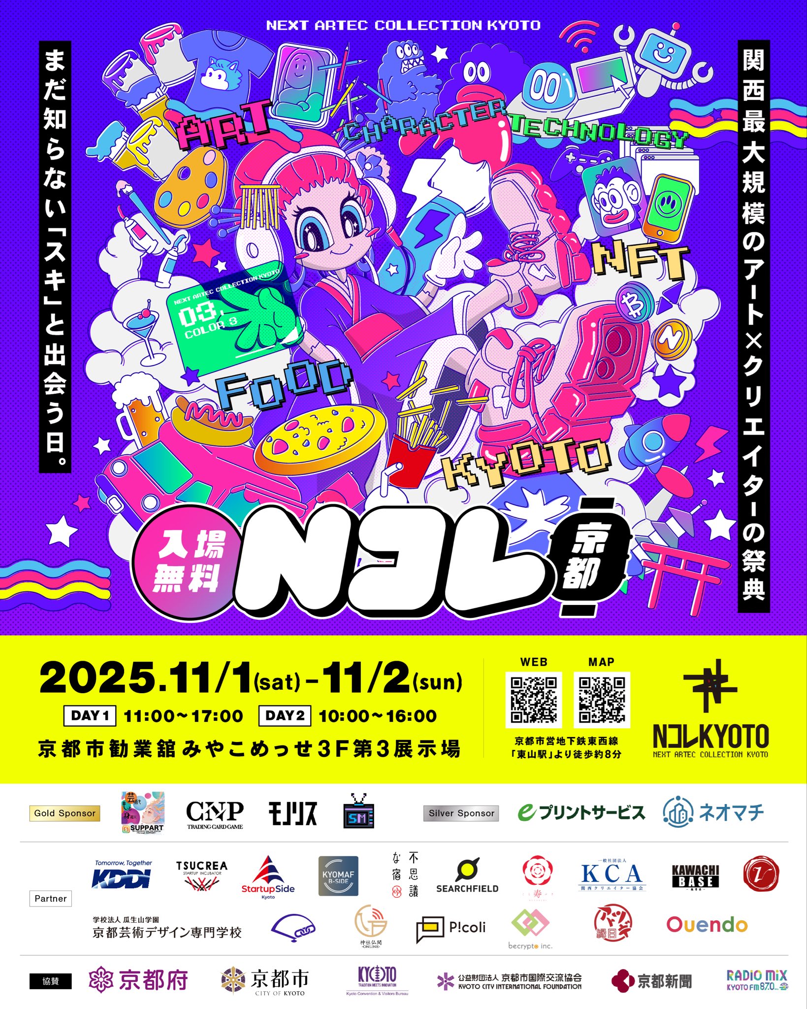 2025年11月1日(土)・2日(日)の二日間、京都市勧業館「みやこめっせ」で開催される西日本最大級のクリエイターの祭典、「Nコレ」に我々KCAはパートナー企業として参画させて頂いているのですが、この度、企業ブースへの出展も決定いたしました!